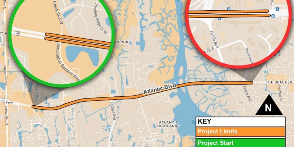 JACKSONVILLE, Fla. – Construction on a project to resurface Atlantic Boulevard (State Road 10) from the Kernan Boulevard overpass to Mayport Road has begun.