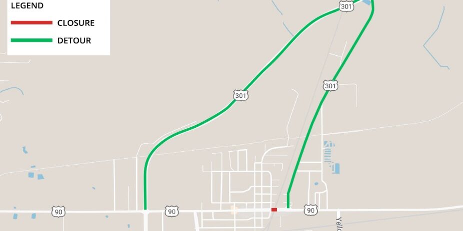 BALDWIN, Fla. – As part of Florida Department of Transportation improvements to the U.S. 90 railroad crossing in the Town of Baldwin, the roadway will be closed in the immediate area of the crossing and detoured starting July 24. This closure is expected to be in place for 25 days, weather and unforeseen circumstances permitting.