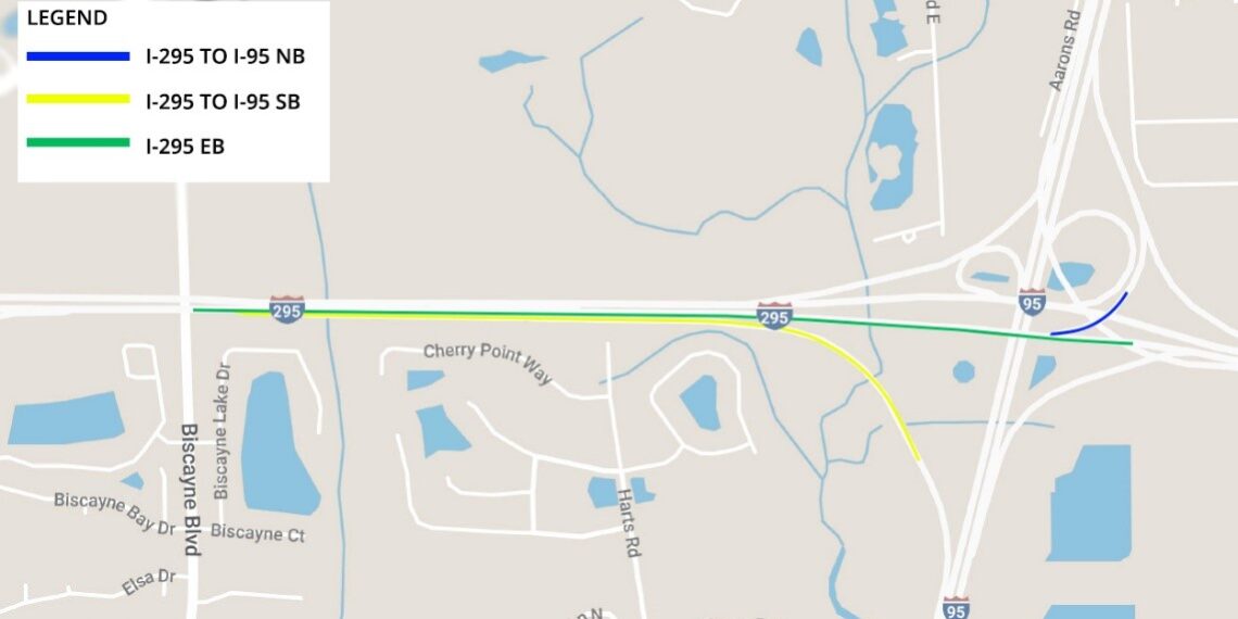 JACKSONVILLE, Fla. – FDOT is implementing a traffic shift on lanes of I-295 eastbound before the I-95 interchange as part of the new phase of construction activities on the I-95/I-295 North Interchange Operational Improvements Project.