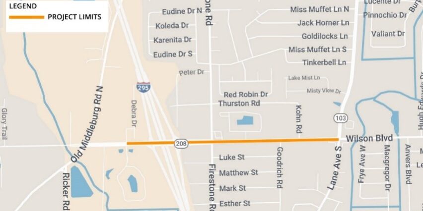 JACKSONVILLE, Fla. – Construction on a FDOT project to resurface State Road 208 (Wilson Boulevard) from Debra Drive to Lane Avenue is scheduled to begin the second week of January, weather and unforeseen circumstances permitting.